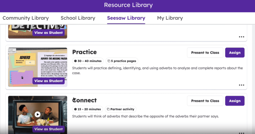 Last, they are part of the Seesaw Stars program where they memorize scripts to teach students reading and math lessons.